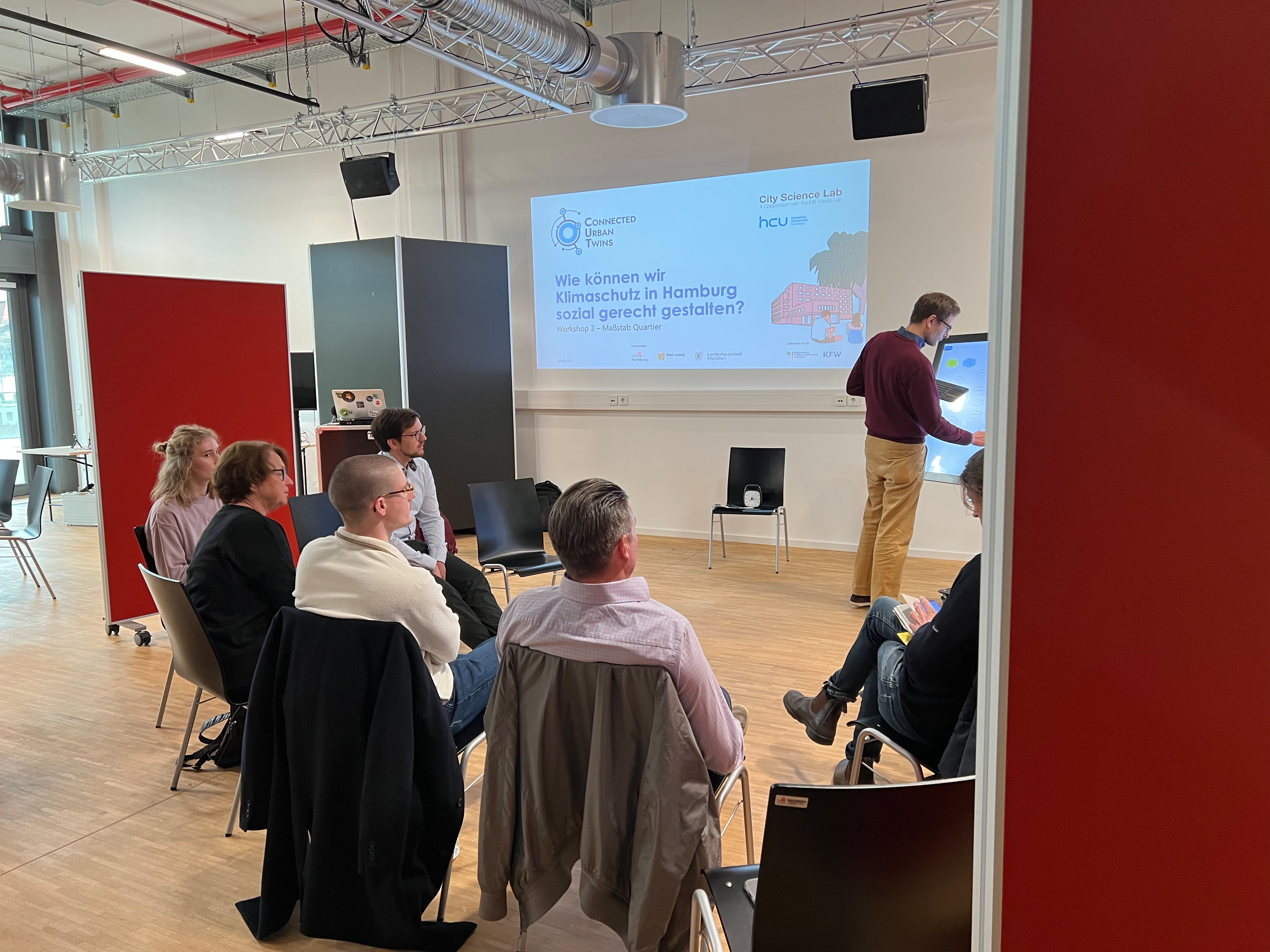 Am 28. März fand im CSL der zweite Workshop statt, der sich konkret mit der energetischen Sanierung und ökonomischen Gentrifizierung auf gesamtstädtischer Ebene beschäftigte. Dabei wurde gemeinsam ein erstes digitales Modell entwickelt. Vertreter:innen der Behörde für Stadtentwicklung und Wohnen sowie der Mieterschutzverbänden haben auf städtischer Ebene relevante Aspekte identifiziert und miteinander in Verbindung gebracht.